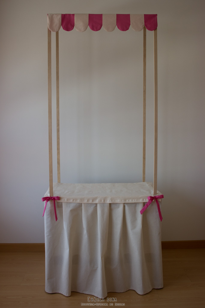 Sempre disse que queria fazer algo diferente quando fosse para "lançar" o bouquet mas, apesar de ter já esta ideia há séculos, nunca a tinha partilhado com ninguém e queria muito que fosse surpresa para as solteiras presentes. Massacraram-me a paciência até ao último minuto para ver se descobriam como ia fazer mas eu não me descosi!! :) Quem me conhece bem sabe que eu adoro quermesses portanto nada melhor que "rifar" o bouquet!!! Fiz um carrinho a partir de um móvel velho de duas prateleiras que estava estacionado há demasiado tempo na garagem dos meus pais; pedi ajuda ao meu padrinho para fazer a armação superior e o toldo (lá está novamente a ajuda dos amigos) e depois encarreguei-me de lhe fazer um "vestido" digno de uma quermesse para as meninas. Comprei e arranjei algumas peças como flores artificiais, tupperwares, colheres de pau, aventais e panos de cozinha para "rifar" e criar um momento diferente e muito divertido! Identifiquei cada peça com um número e pedi a cada donzela para tirar uma rifinha. Infelizmente não tenho muitas fotos do momento em si (com muita pena minha só tenho video deste momento) mas aqui fica um cheirinho de como ficou o carrinho. Eu achei que ficou muito fofo. E vocês o que acham?